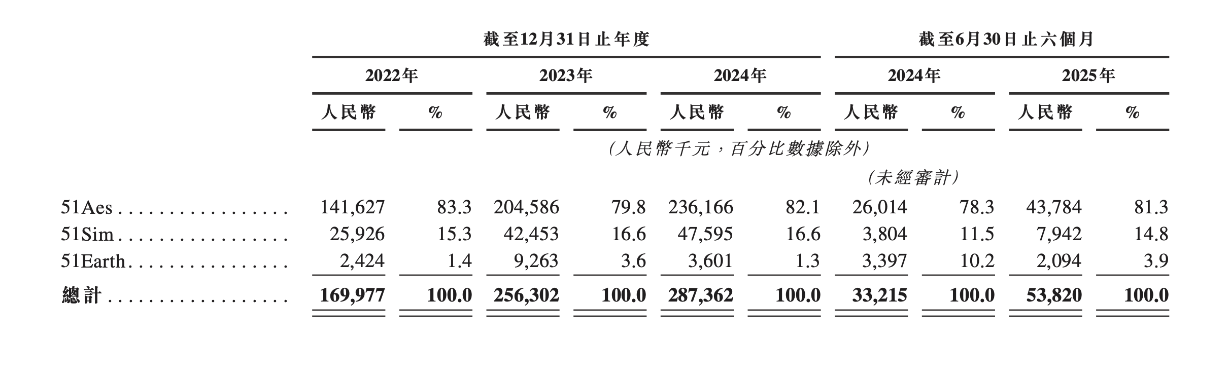 2021-2024年及今年上半年,旨在提升企业客户设计与运营效率,支援跨行业数字智能转型的数字孪生开发及应用平台——51Aes,一直是五一视界最主要的收入来源,分别约1.11亿、1.42、2.05亿、2.36亿、4378.4万元,占比分别为88.3%、83.3%、79.8%、82.2%、81.3%;五一视界于2022年孵化的51Earth,近三年半的营收分别为242.4万、926.3万、360.1万、209.4万元,营收占比分别为1.4%、3.6%、1.2%、3.9%。