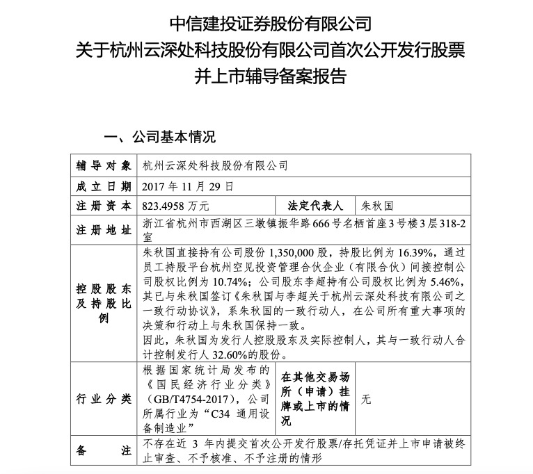 而此次提速IPO的云深处,成立于2017年11月,由浙江大学控制科学与工程学院副教授、博士生导师的朱秋国和同样来自浙大实验室的李超博士共同创办。
