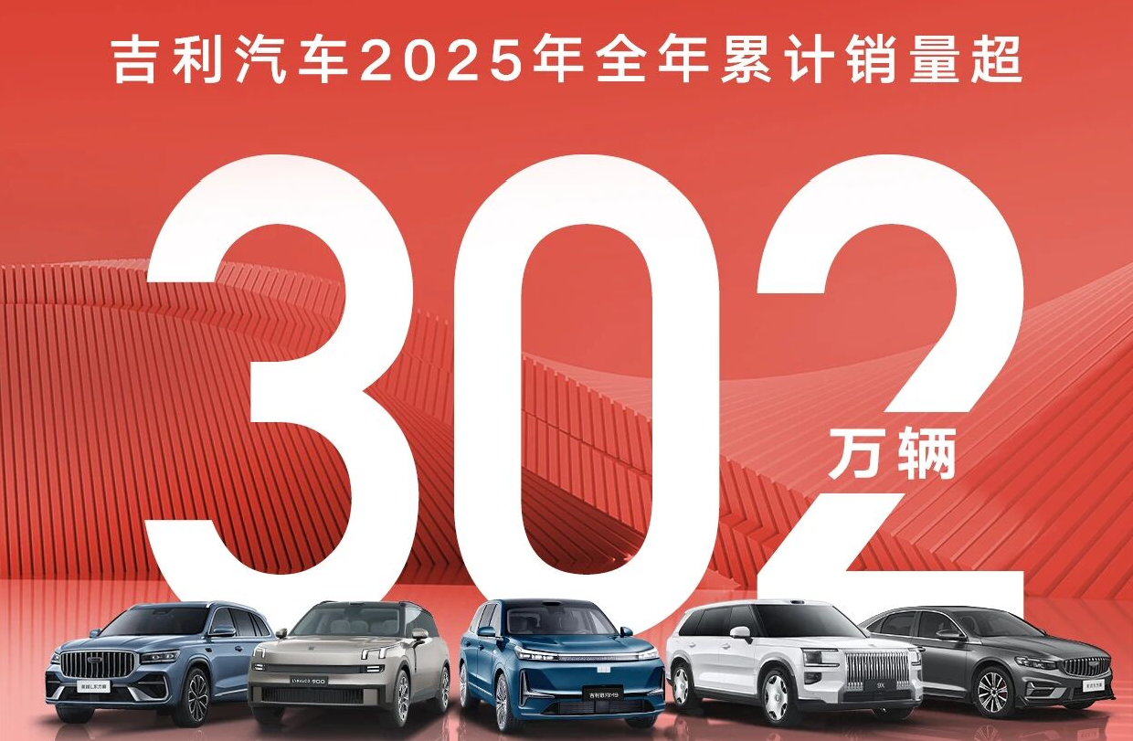 根据吉利控股集团不久前发布2025年全年销量数据,集团总销量达到411.6万辆,同比增长26%。旗下吉利汽车控股有限公司全年销量超过了302万辆,同比增长39%。