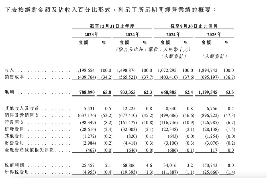 报告期内,其线下渠道收入由2023年的1.672亿元增至2024年的3.556亿元,增幅为112.7%,并由2024年前三季的2.606亿元增至2025年同期的4.461亿元,增幅为71.2%。