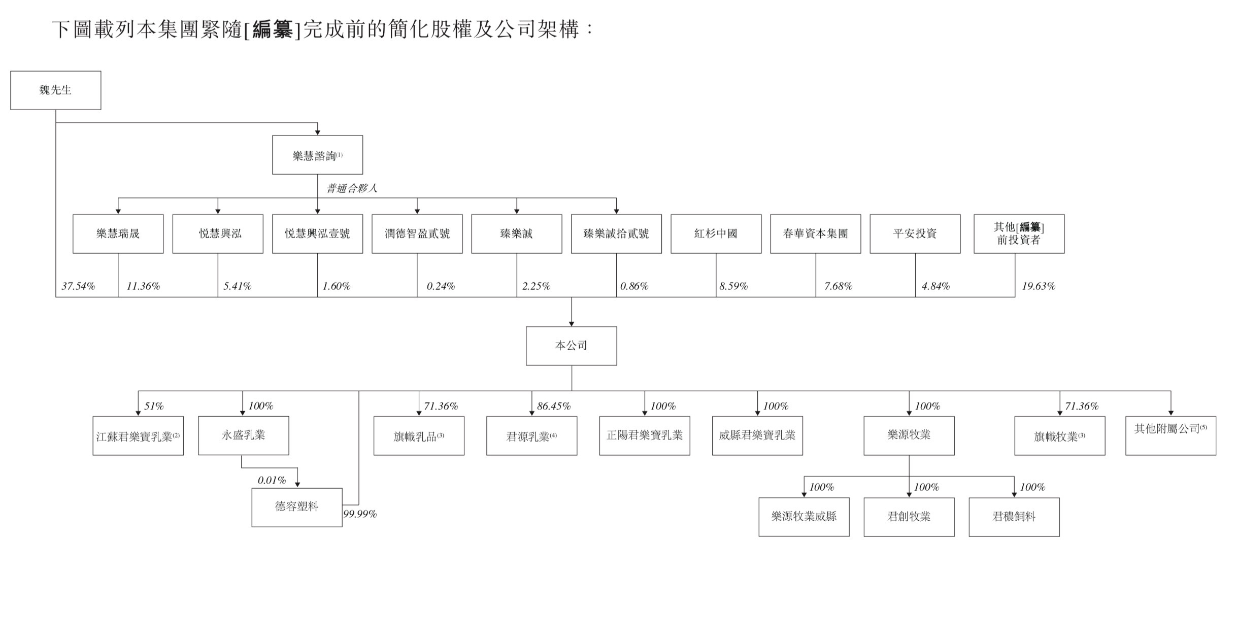 IPO前,魏立华合计持股59.26%,为君乐宝控股股东,红杉中国和春华资本分别持股8.59%和7.68%,位列第一二大机构股东。