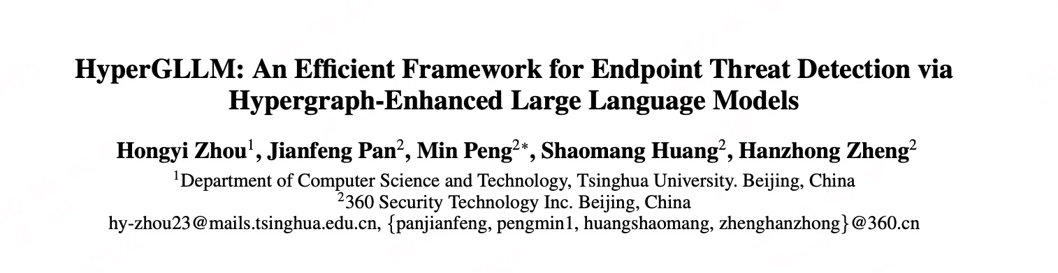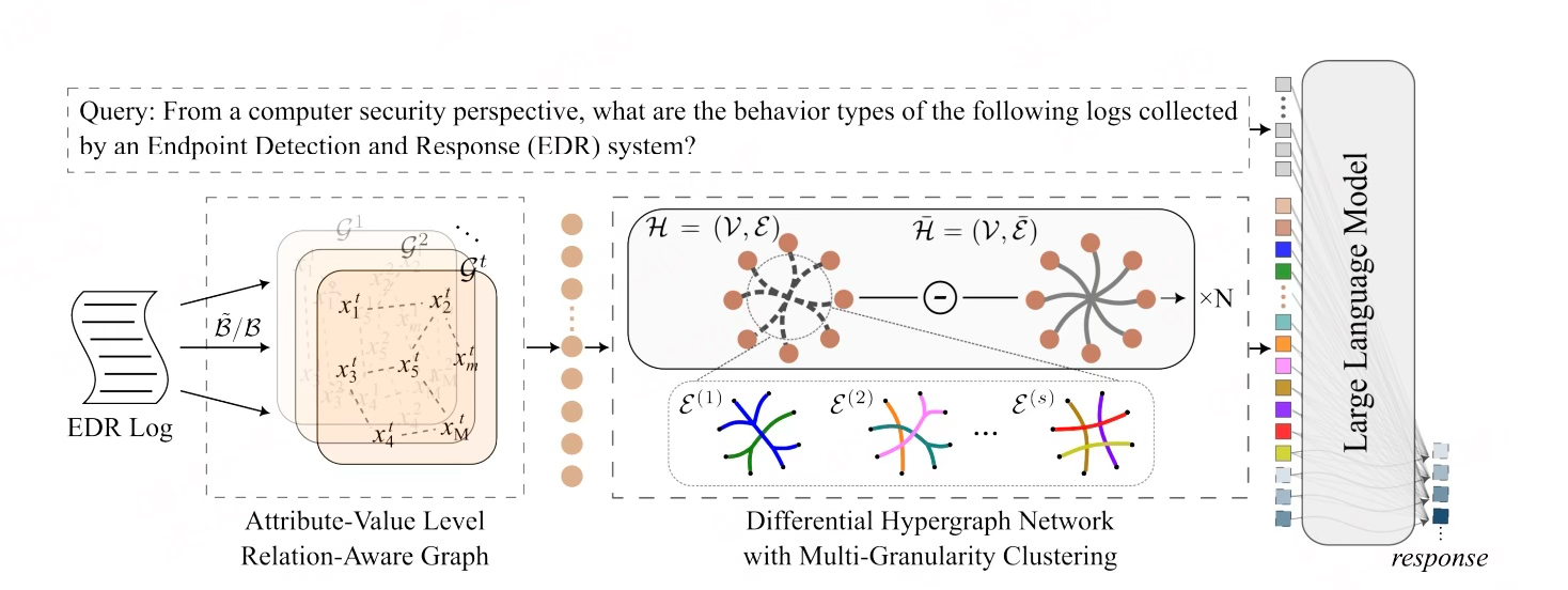 该论文直击终端安全核心挑战—如何从海量、交织的事件中精准捕捉高级威胁。为此,团队创新性地提出了 “HyperGLLM”框架,首次将超图(Hypergraph) 的复杂关系推理能力与大语言模型(LLM)的语义理解优势相结合,为终端行为分析开辟了新路径。