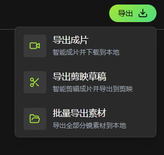 5、成片导出交付:完成所有分镜视频生成后,即可进入成片环节。支持批量导出剪映文件。