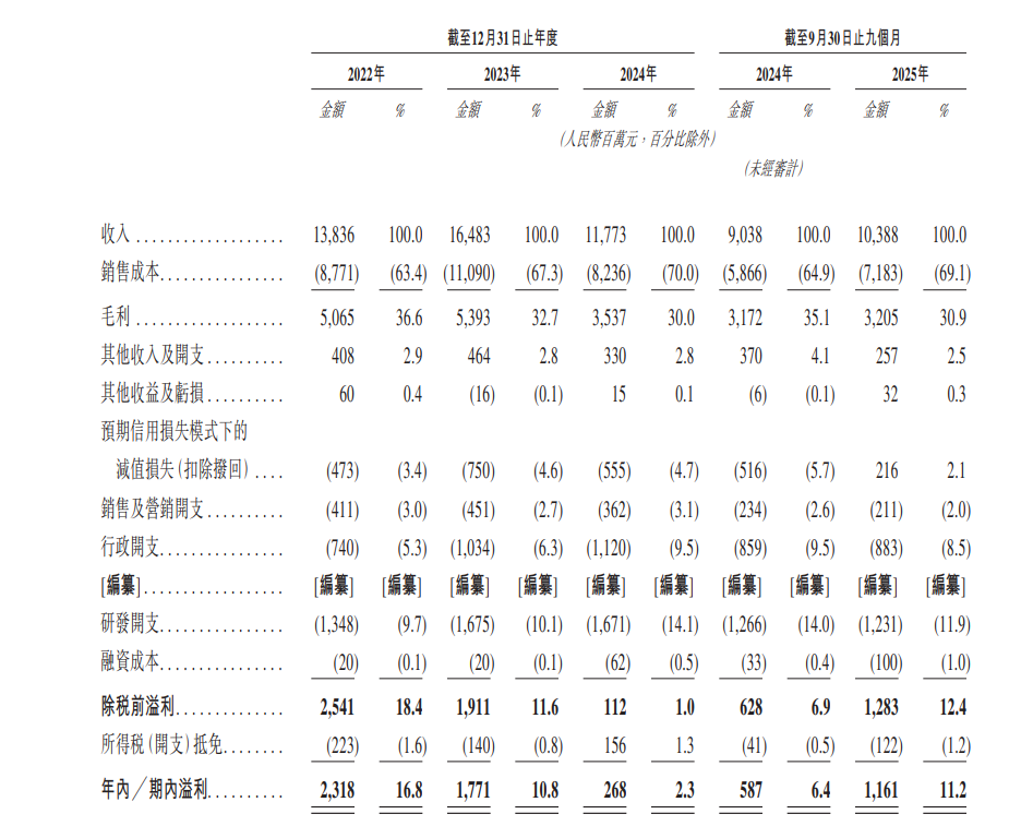 业绩方面,2022年、2023年、2024年及2025年前三季度,先导智能收入分别约为138.36亿元、164.83亿元、117.13亿元、103.88亿元;期内溢利分别为23.18亿元、17.71亿元、2.68亿元、11.61亿元。